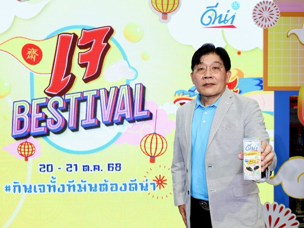 คุณจิตรภณ ไตรรัตน์วรวุฒิ ผู้จัดการฝ่ายการตลาดกลุ่มผลิตภัณฑ์นมถั่วเหลืองดีน่า บริษัท แดรี่พลัส จำกัด ในกลุ่มบริษัทดัชมิลล์ ให้สัมภาษณ์เพิ่มเติมว่า “ผลิตภัณฑ์ดีน่า ของเราเป็นผลิตภัณฑ์นมถั่วเหลืองผสมธัญพืช ในฐานะที่เราเป็นผลิตภัณฑ์เจ ในทุกๆ สูตร อีกทั้งยังเป็นผลิตภัณฑ์ที่ได้รับการการันตี สินค้าทางเลือกเพื่อสุขภาพ เราจึงให้ความสำคัญกับเทศกาลกินเจ เป็นประจำในทุกๆ ปี ซึ่งในปีนี้เราก็ได้สนับสนุนเทศกาลกินเจในหลากหลายพื้นที่ทั่วประเทศและหนึ่งในนั้นคืองานวันนี้ กับ กิจกรรม เจ BESTIVAL 2025 กินเจทั้งทีมันต้องดีน่า ภายในงานรวมไลฟ์สไตล์การกินเจมาให้ครบครัน ทั้งบูธอาหารเจ เมนูอาหารเจจากนมถั่วเหลืองดีน่า การคอลแลปกับแบรนด์อื่นๆ ที่รังสรรค์เมนูเจตลอดเทศกาลเจปีนี้ อีกทั้งเอาใจสายมูด้วยการสักการะเทพเจ้า และซุ้มดูดวงจากสมาคมโหรแห่งประเทศไทยฯ และโปรโมชั่นพิเศษภายในงาน ซื้อนมถั่วเหลืองดีน่า ก็จะได้เล่นกิจกรรมเพื่อรับของรางวัลมากมาย นอกจากนี้ยังเอาใจสายเอ็นเตอร์เทรนด้วยโชว์พิเศษจากศิลปินทั้งสองวัน กับ วงPROXIE และ จูเนียร์ มาร์ค จาก GMM ที่มาสร้างความสนุกสนาน และความบันเทิงภายในงาน