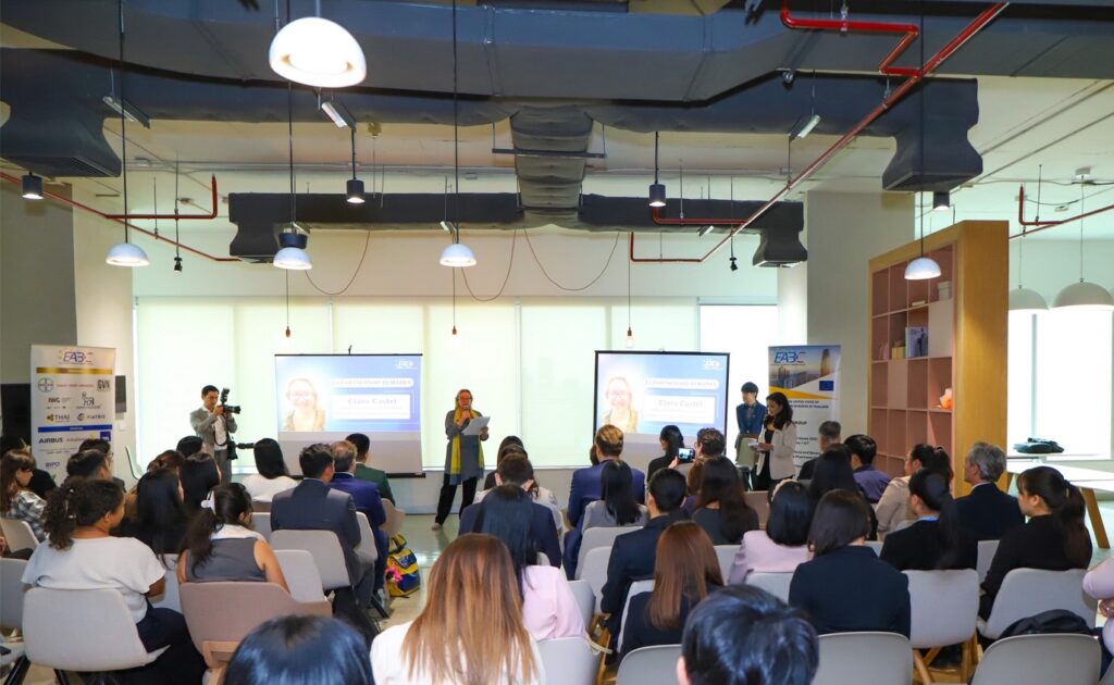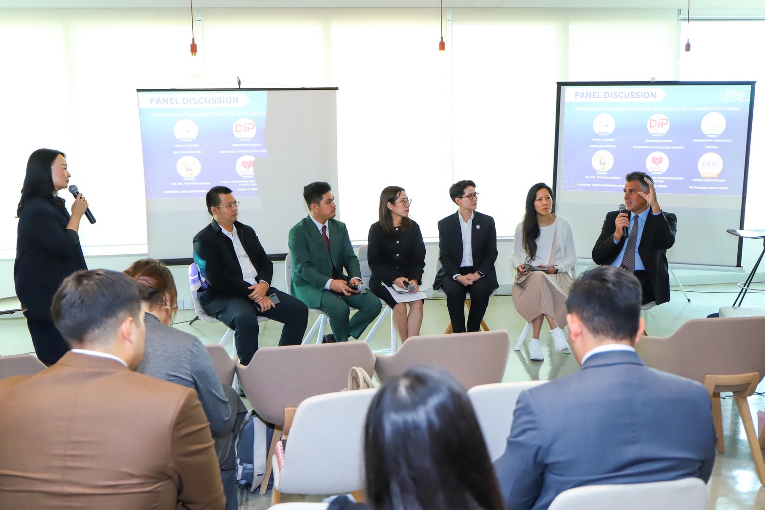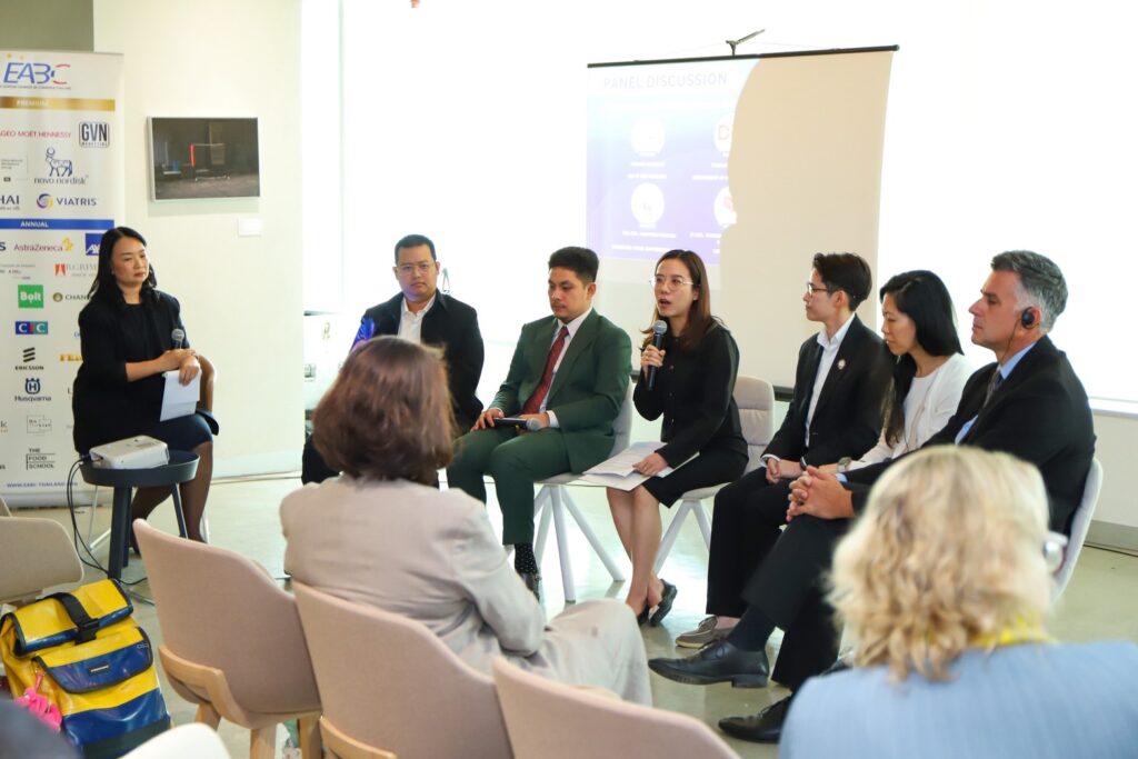 ภายในงานสัมมนาซึ่งนำโดย นางสาวภาวิณี บุนยะมิศร์ ประธานคณะทำงานด้านการคุ้มครองทรัพย์สินทางปัญญา สมาคมการค้ายูโรเปียนเพื่อธุรกิจและการพาณิชย์ (EABC) พร้อมด้วยผู้เชี่ยวชาญจาก SEA IP SME Helpdesk, กรมศุลกากร, กองบังคับการปราบปรามการกระทำความผิดเกี่ยวกับอาชญากรรมทางเศรษฐกิจ (บก.ปอศ.), กองป้องปรามการละเมิดทรัพย์สินทางปัญญา กรมทรัพย์สินทางปัญญา, และผู้แทนจากแพลตฟอร์มอีคอมเมิร์ซชั้นนำอย่าง Lazada และ Alibaba ร่วมสะท้อนภาพรวมภูมิทัศน์การบังคับใช้กฎหมายทรัพย์สินทางปัญญาและการปราบปรามสินค้าผิดกฎหมายในประเทศไทย และแลกเปลี่ยนแนวปฏิบัติที่ดีจากยุโรปและอาเซียน รวมถึงบทบาทภาคธุรกิจในการร่วมมือกับภาครัฐเพื่อส่งเสริมการป้องกันและปราบปรามการค้าผิดกฎหมาย พร้อมเผยแพร่เอกสารเปิดผนึก “ข้อเสนอ เพื่อการแก้ไขและจัดการปัญหาการค้าผิดกฎหมายในประเทศไทย” ซึ่งจัดทำโดย EABC ระบุถึงสถานการณ์การค้าผิดกฎหมาย ผลกระทบ และข้อเสนอแนะแนวทางแก้ไข ภายใต้การบูรณาการความร่วมมือระหว่างผู้มีส่วนได้ส่วนเสีย ส่งเสริมให้ผู้ประกอบการในทุกระดับและจากทุกประเทศ โดยเฉพาะระดับวิสาหกิจขนาดกลางและขนาดย่อมให้ได้รับการคุ้มครองด้านทรัพย์สินทางปัญญาและจากการค้าสินค้าผิดกฎหมาย การยกระดับกฎระเบียบให้สอดคล้องกับมาตรฐานสากล เพิ่มความสามารถในการแข่งขันและความมั่นคงทางเศรษฐกิจของประเทศไทยในระยะยาว สอดรับยุทธศาสตร์ชาติ