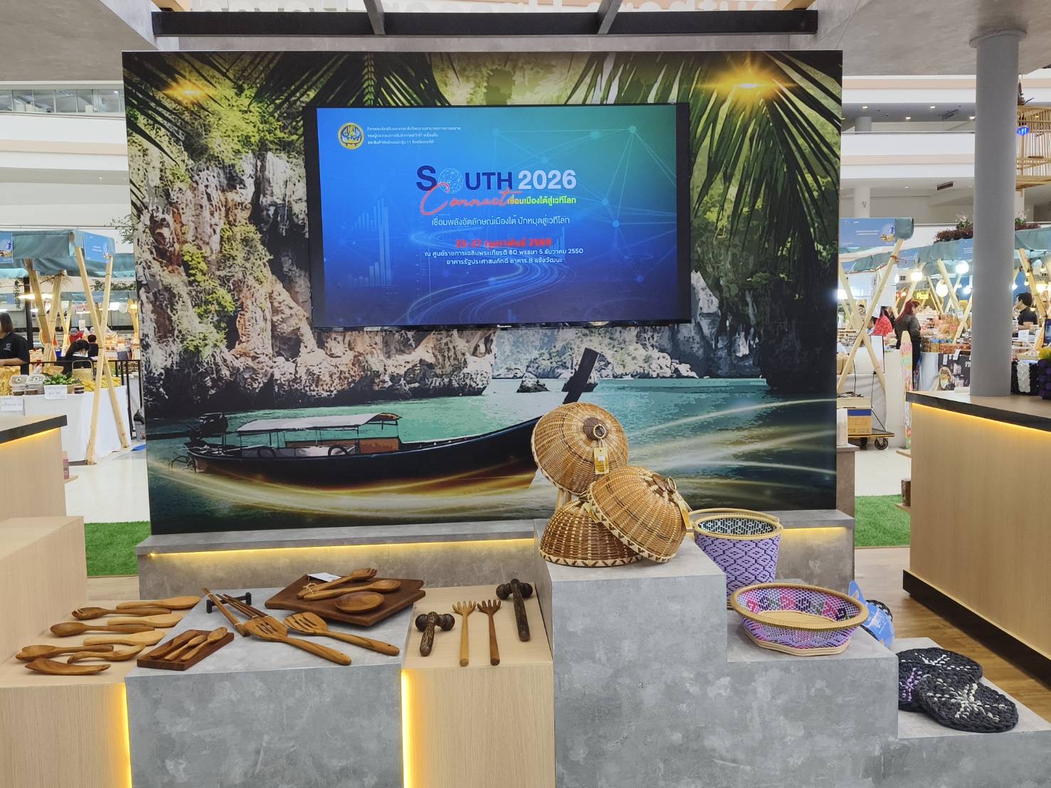 เมื่อวันที่ 24 กุมภาพันธ์ 2569 ร้อยตรี จักรา ยอดมณี รองปลัดกระทรวงพาณิชย์ เป็นประธานเปิดงาน “South Connect 2026” นำสินค้าเด่นจาก 11 จังหวัดภาคใต้ มาจำหน่ายร่วมกว่า 200 บูธ ณ ศูนย์ราชการเฉลิมพระเกียรติฯ อาคารรัฐประศาสนภักดี (อาคาร B) ถนนแจ้งวัฒนะ ภายใต้แนวคิด Pavilion ที่เป็นมิตรต่อสิ่งแวดล้อม บรรยากาศภายในงานแบ่งออกเป็น 6 โซน ได้แก่ โซนร้านกาแฟ โซนร้านอาหารและเครื่องดื่ม โซนสินค้าของใช้และของตกแต่ง โซนเสื้อผ้าและเครื่องแต่งกาย โซนสมุนไพรที่ไม่ใช่อาหาร และโซนบริการด้านการท่องเที่ยว